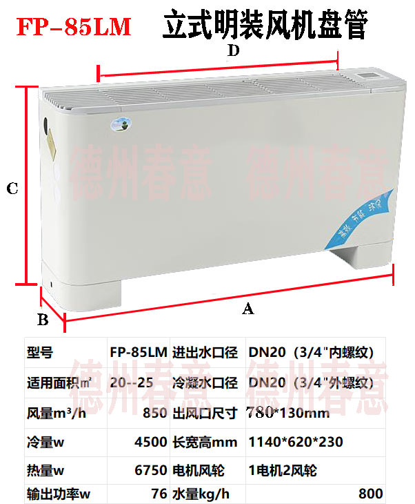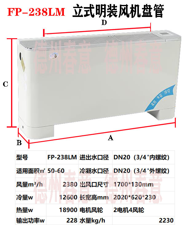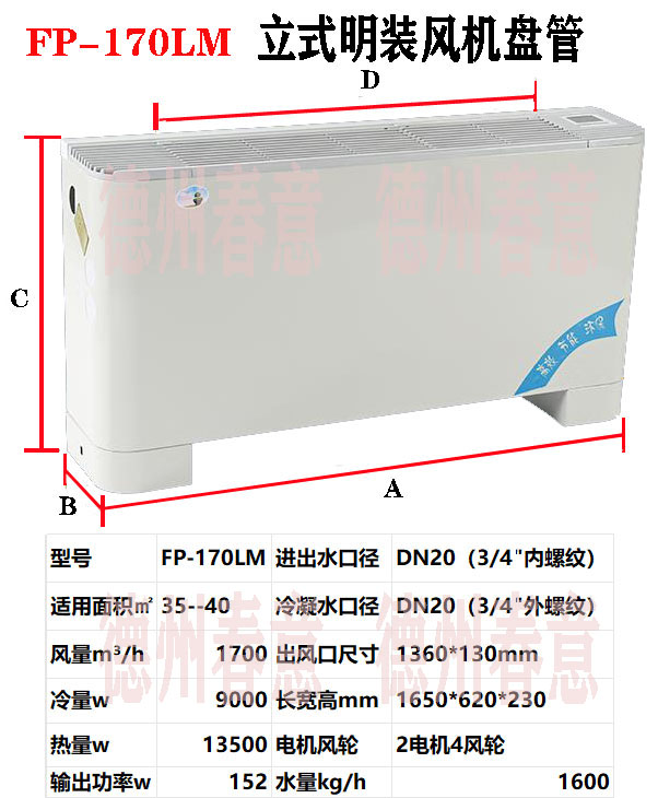 安裝方式:“立式” 指設備為垂直放置,通常落地或靠墻安裝。“明裝” 指其所有部件(風機、電機、盤管、外殼、控制面板等)及連接的管道、電線均完全暴露在室內(nèi)可見位置,無需任何吊頂或墻體開槽隱蔽。