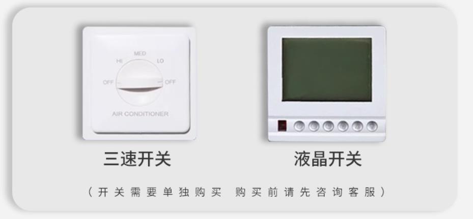 獨立控制:每個單元配備獨立溫控器和調(diào)速開關(guān),用戶可自行開關(guān)、調(diào)節(jié)風速和設定溫度,實現(xiàn)房間的個性化溫控和節(jié)能運行。